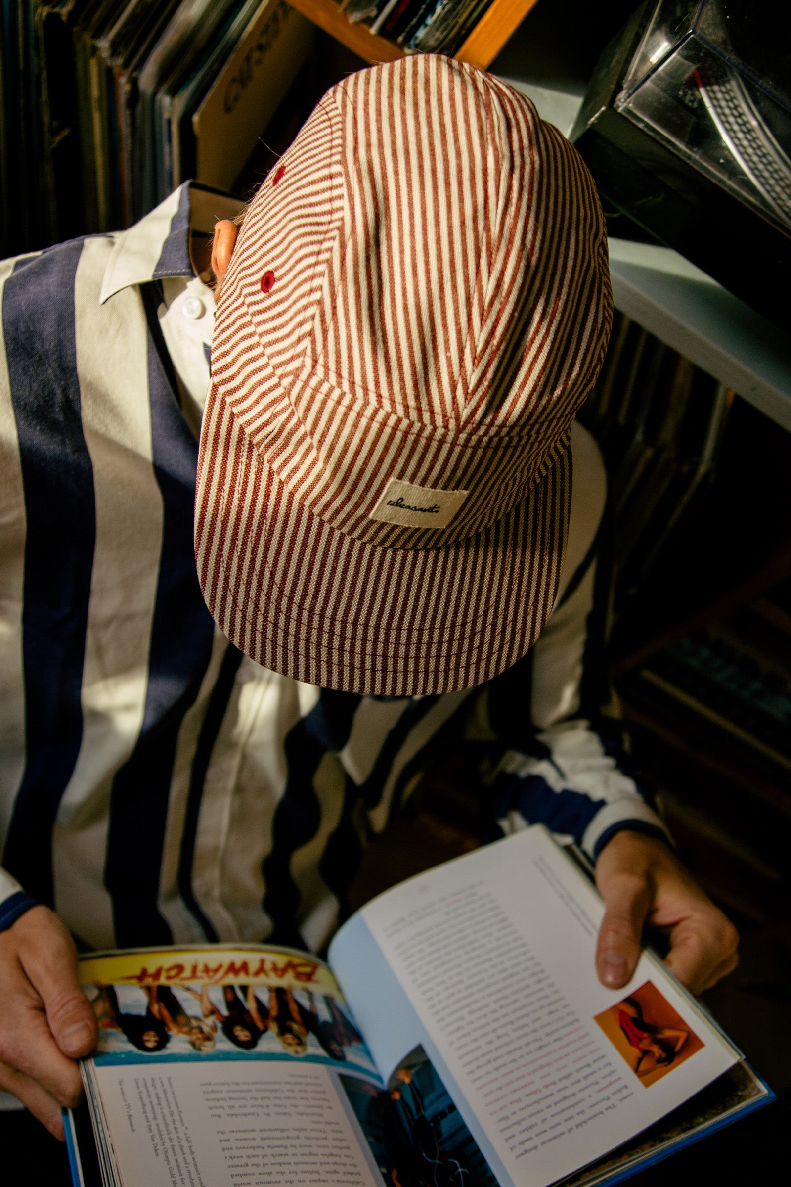 Pinstripe red upcycled 5-panel cap