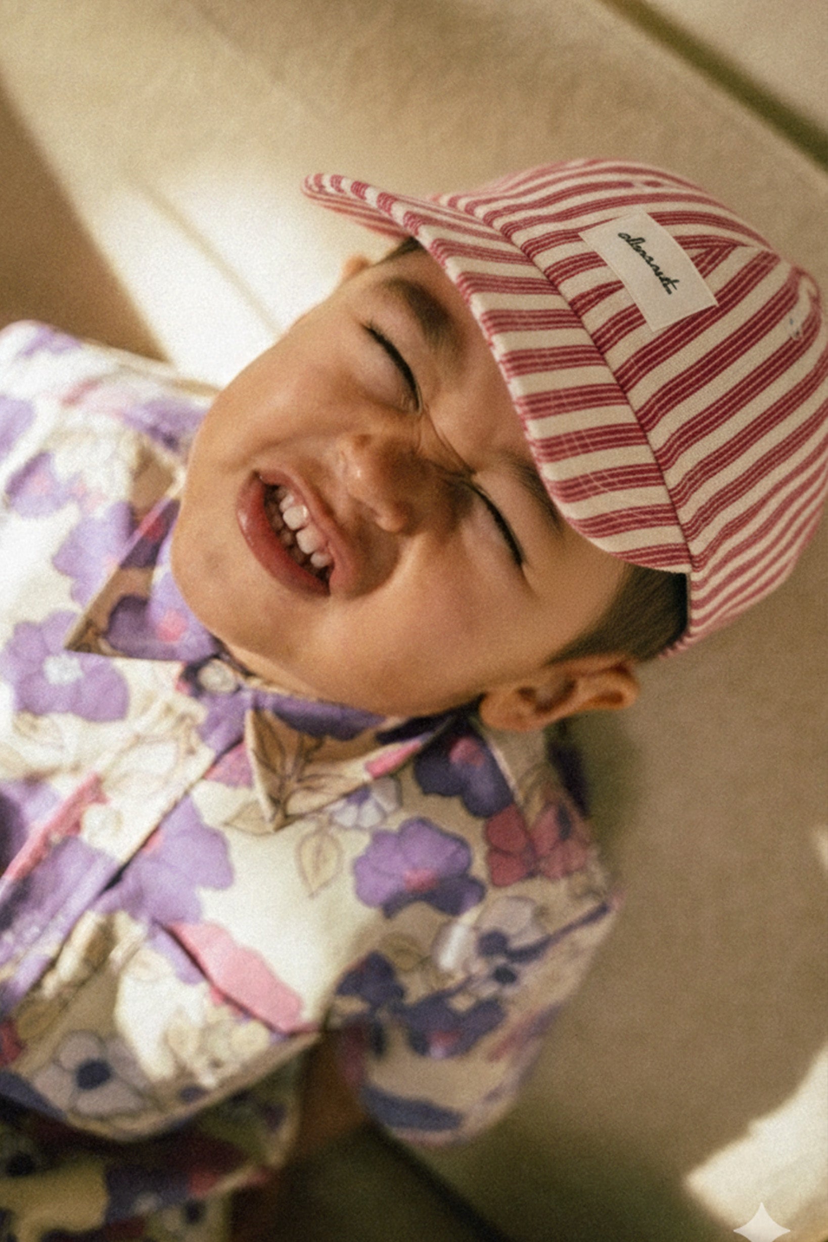 Red striped upcycled kids cap