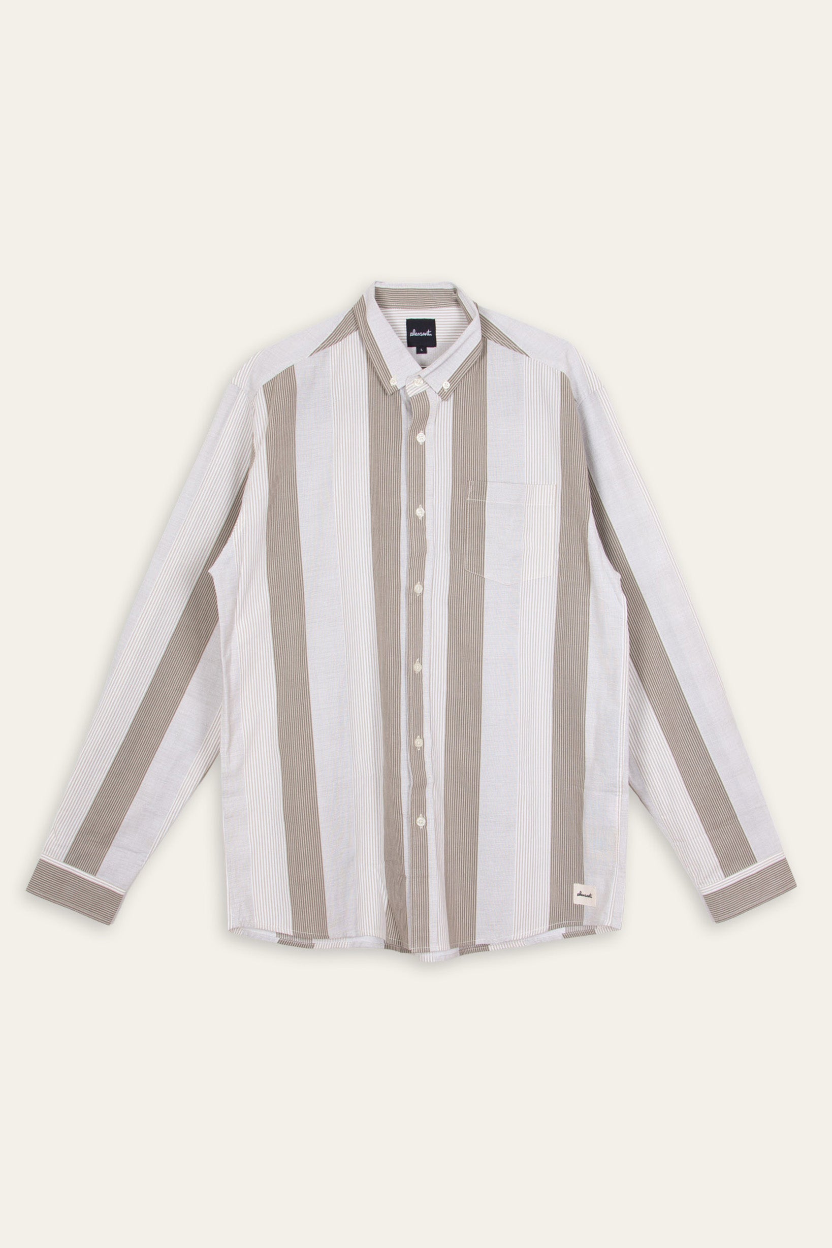 Stylish beige stripe upcycled long sleeve shirt